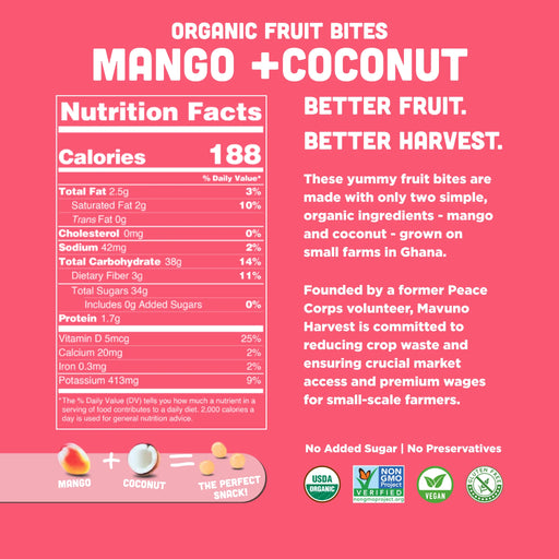 Mavuno Harvest // Organic Mango and Coconut Fruit Bites, 1.94 oz